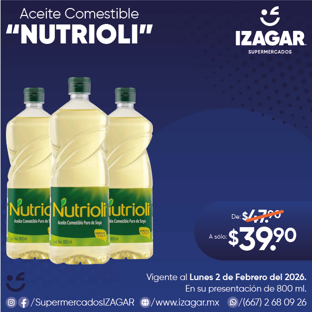 Cocina saludable con Nutrioli, aceite que es ideal para su uso diario en tus creaciones culinarias. Que contiene omegas 3, 6 y 9. Además de Vitamina E. Sin colesterol por su origen vegetal.