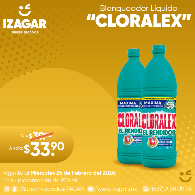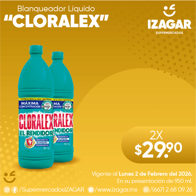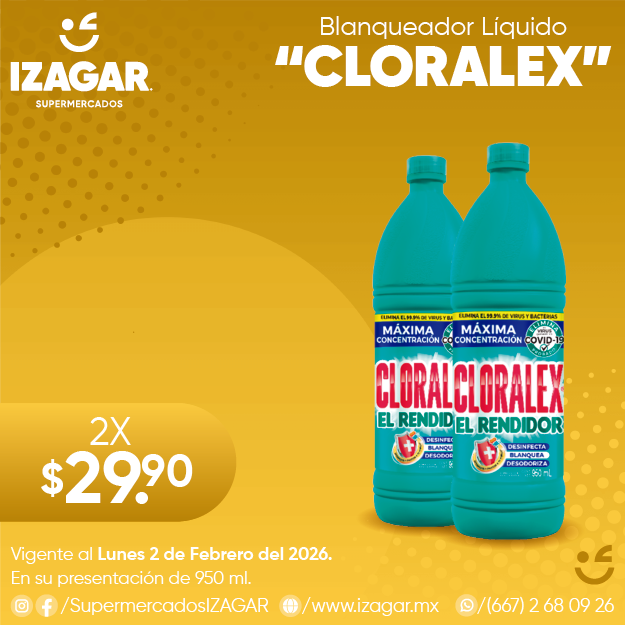 Cloro blanqueador líquido: Cloralex diseñado para ropa, loza, platos, inodoros y lavabos. Por su contenido, da blancura a tu ropa, desinfecta y ayuda a la limpieza.