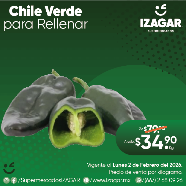 El Chile Verde tiene un alto contenido en vitamina C, su color verde indica que contiene clorofila, la cual tiene efectos antioxidantes.