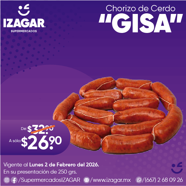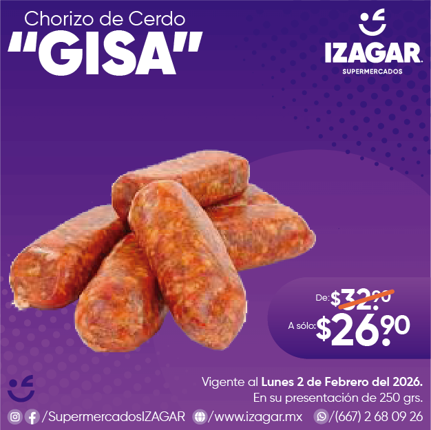 Chorizo de cerdo elaborado con las mejores especies de la región. El chorizo de cerdo es un embutido ideal para acompañarlo con platillos principales.