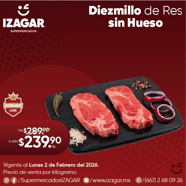 ¿Qué tal una rica carne asada para la comida del día de hoy? Disfruta de un trozo de Diezmillo de Res sin Hueso que tenemos en nuestra gama de Dorado Line, en todas nuestras sucursales.