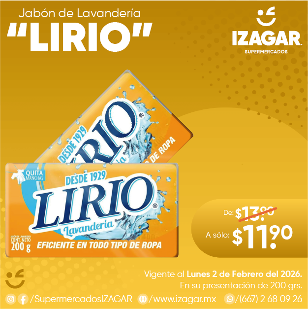 El jabón de lavandería Lirio es un producto que cuenta con la aprobación y la recomendación de generación tras generación, desde el año 1929. Se enfoca en brindar apoyo para hacer que el lavado de las prendas sea mucho más sencillo.