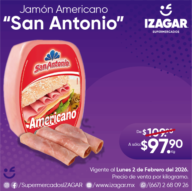 Prepara platillos o botanas con el Jamón Americano Extra "San Antonio" hecho de pavo y cerdo con ingredientes naturales que les dará un sabor único a tus preparaciones.