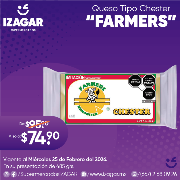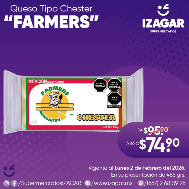 El queso tipo Chester es el tradicional queso menonita con una deliciosas consistencia, sabor y excelente gratín no se quema tan fácilmente, ideal preparar platillos como, ensaladas, postres o comerlo en bocadillos.