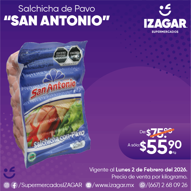 Disfruta de las Salchichas de Pavo "San Antonio", con su textura suave y rico sabor. Además de ser una fuente de proteína excelente para degustar en compañía de las personas que más quieres.