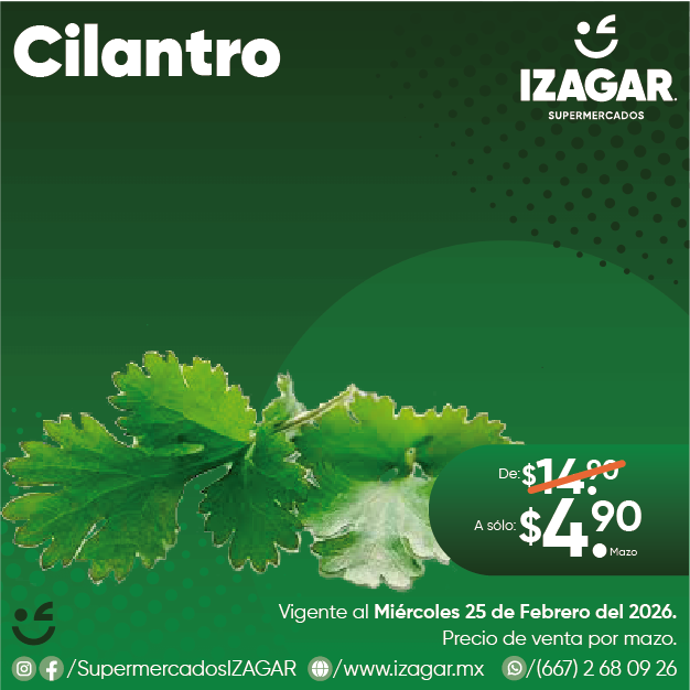 El cilantro se utiliza en la elaboración de una gran variedad de recetas, ya que posee propiedades estimulantes, antiespasmódicas, antiinflamatorias y antibactericidas, además aporta un alto contenido de vitaminas y antioxidantes.