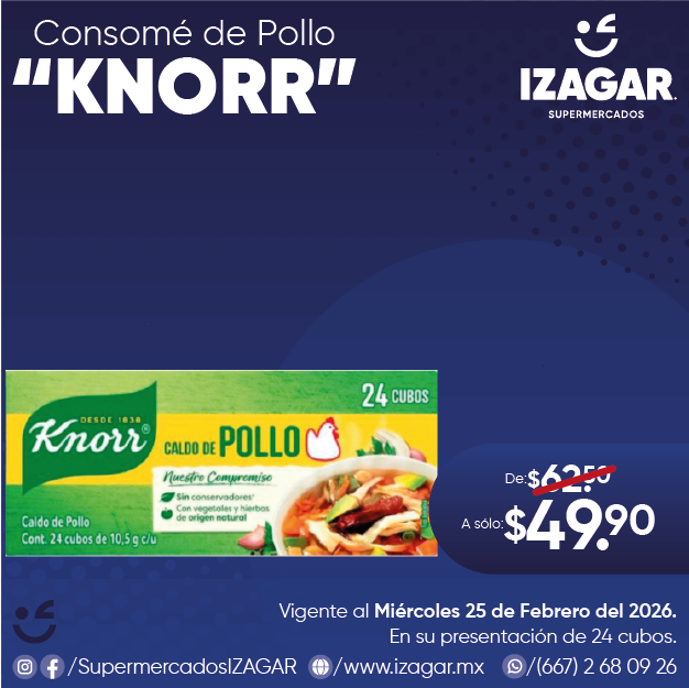 Dale todo el sabor y el sazón a tus comidas y caldos preferidos con el caldo de pollo en cubos Knorr.