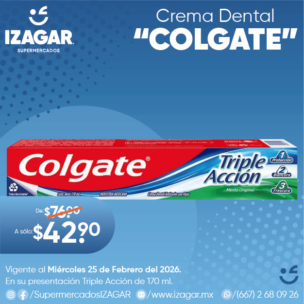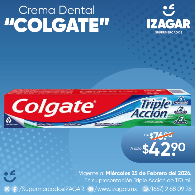 Consigue la mejor protección en tu boca con la pasta dental Colgate Triple Acción menta original. Ahora en una presentación de 2 piezas de 140 ml cada una, ideal para compartir con toda la familia.