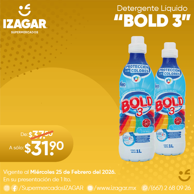 BOLD 3 lava la ropa sin dañar el medio ambiente gracias a que no contiene fosfatos. Con su fórmula completa con Softech con micro agentes de suavidad que potencializan la suavidad en los tejidos.