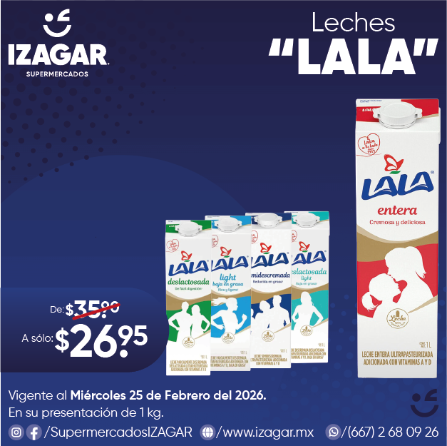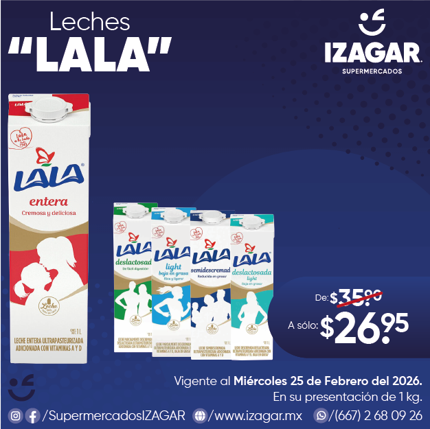 Adquiere cualquiera de las Leches de la marca "Lala" en su presentación Entera, Light, Deslactosada y Deslactosada Light al mejor precio de la región en cualquiera de nuestra sucursales.