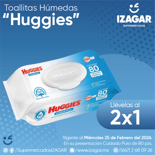 Las toallitas húmedas para bebé Huggies son hidratantes, tienen una textura suave, vitamina E, aloe y son elaboradas con ingredientes naturales. Son hipoalergénicas y 90% biodegradables