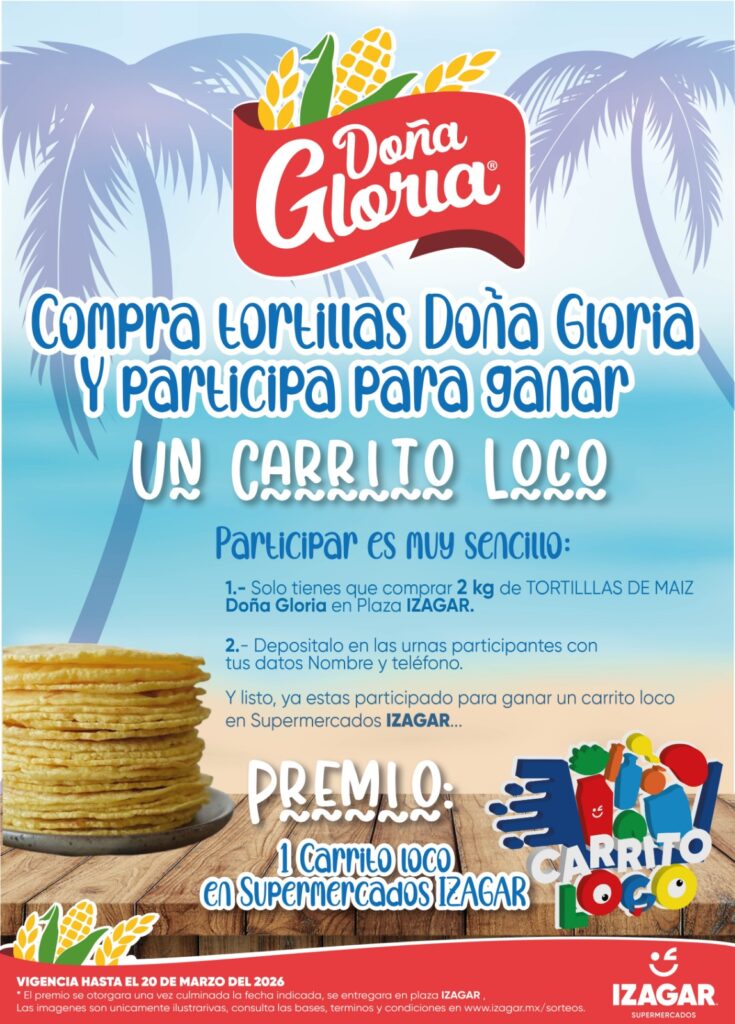 Compra 2 kg de Tortillas Doña Gloria en Supermercados Izagar y participa para ganar: