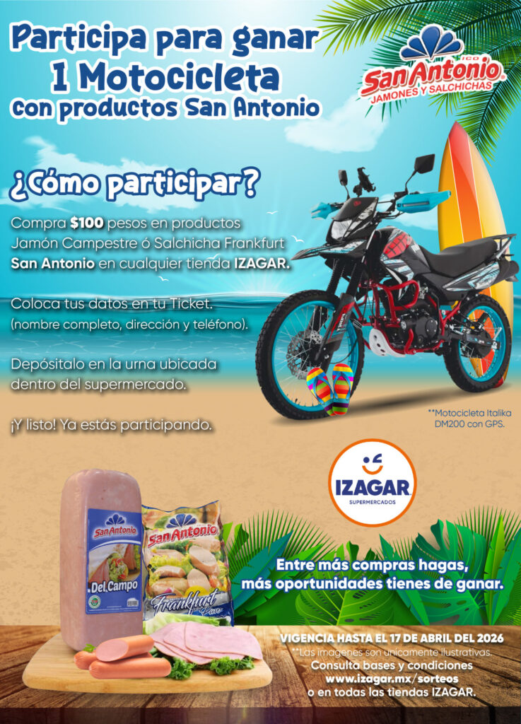¡Gana una motocicleta con San Antonio en Supermercados Izagar!